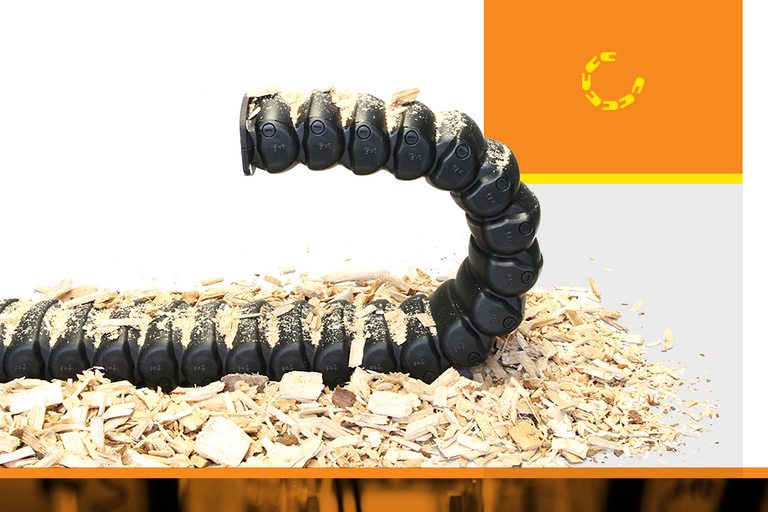 Първокласната защита на кабелите е изключително важна за всяко производство. За индустрии като дървообработващата, където средата е силно замърсена, igus разработи специални плътно затворени кабеловодещи вериги.
