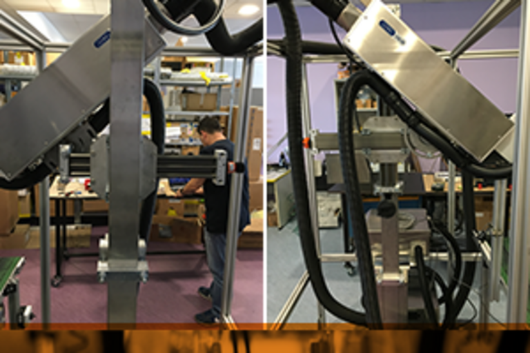 Клиентът ни потърси с желание да предложим готово решение, с което чрез ръкохватки да се позиционира лазерна глава при промяна на размера на бутилките в бутилираща линия. Предизвикателството беше, че продуктът трябва да следи размера на бутилките, а изискване на клиента - да не се нуждае от обслужване и да бъде устойчив на корозия.