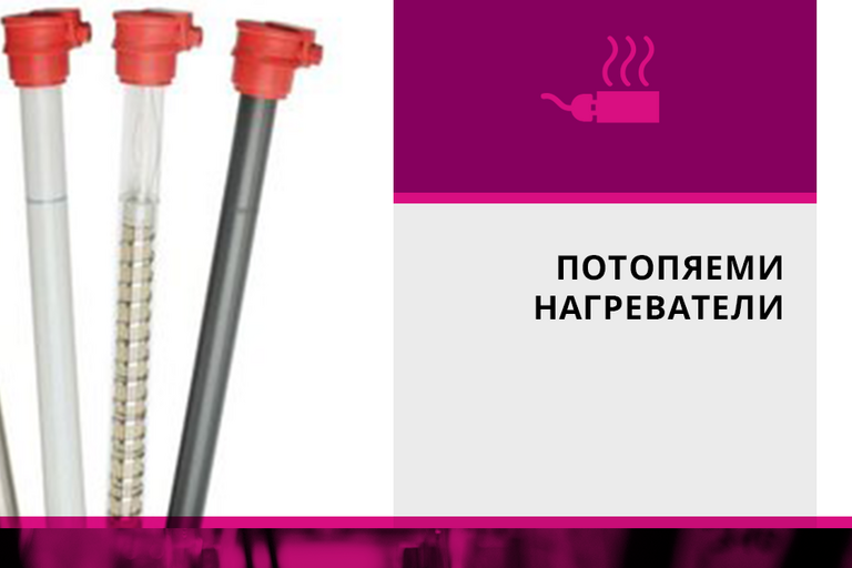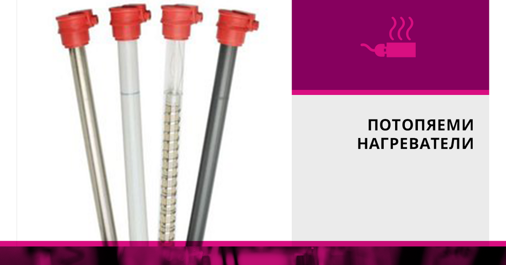 - Потопяеми нагреватели за директно нагряване – устойчиви са на киселини и алкални разтвори и могат да се употребяват при работа с голяма гама флуиди. Тръбата им може да е изработена от различни материали като порцелан, неръждаема стомана, кварцово стъкло, титан и т.н., а нагревният елемент е от керамично тяло, което спомага за равномерното разпределение на температурата по цялата дължина на нагревателя. Възможността за изгаряне на нагревателя е почти нулева, защото няма зони с прекомерно нагряване.