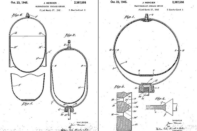 Der französische Ingenieur Jean Mercier (1901–1971) gilt als Vater des hydraulischen Blasenspeichers. Er meldete grundlegende Patente an, darunter: