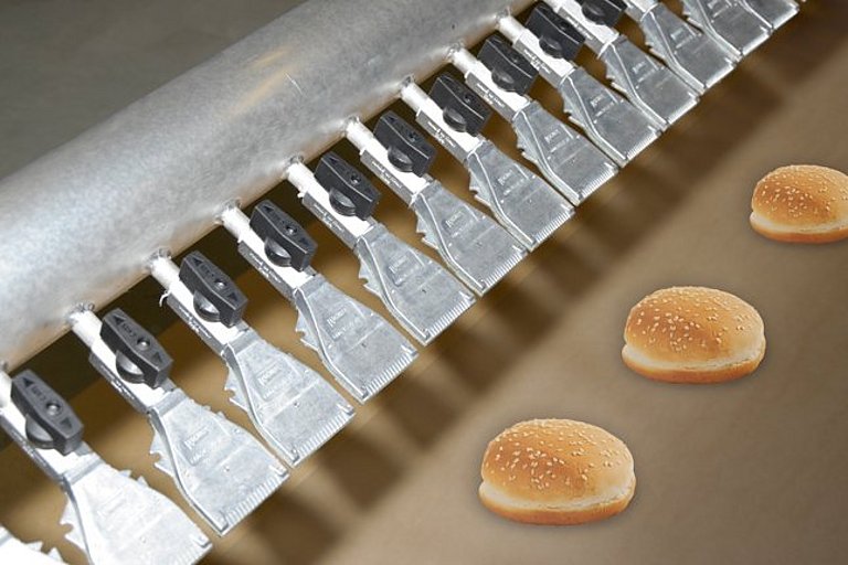 - Транспортиране и преместване: въздухът под налягане може да се използва за транспортиране на леки материали в производствени линии и за премахване на обекти от тях с кратки насочени пулсации. Решението е безконтактно и съответно – изключително хигиенично.