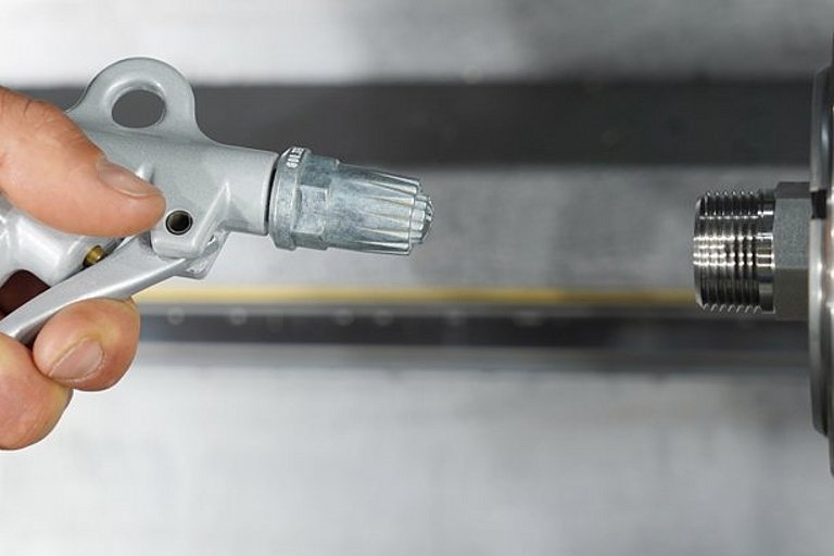 - Почистване и издухване: мощната въздушна струя е идеална за почистване на повърхности от стружки, прах и други замърсявания. Дюзите могат да се монтират както неподвижно, така и върху пистолет за въздух, и са проектирани за намалени нива на шум, което допринася за подобряването на условията на работната среда. Вижте един от реализираните ни проекти ТУК.
