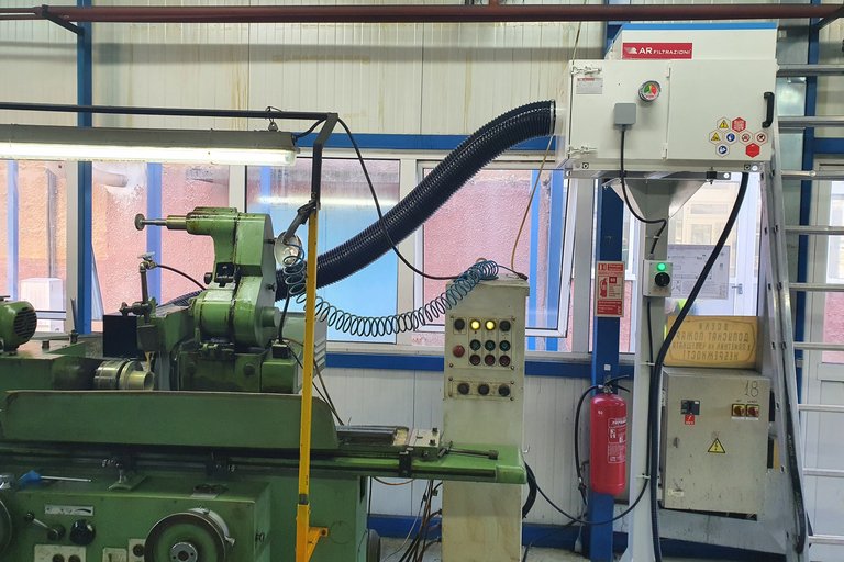 Всяка от шестте системи беше поставена на стойка, така че да не възпрепятства работата. За шлифовъчните машини изработихме специални куплунги, така че максимално да улавят генерираните пръски и прах.