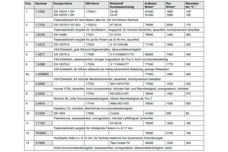 Für die Auswahl des richtigen Werkstoffes ist es wichtig zu beachten mit welchen Medien eine Feder in Berührung kommt.
