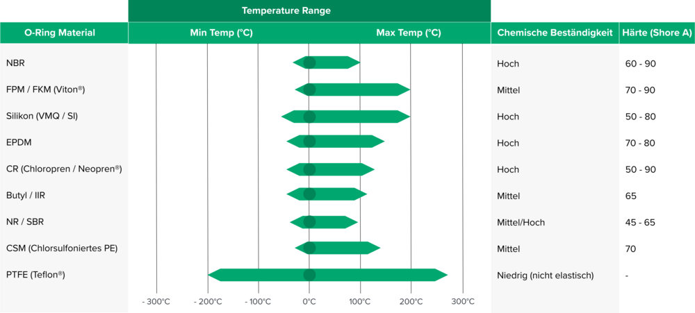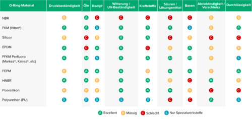 Damit ermöglicht diese Übersicht eine klare Auswahl des passenden O-Ring-Materials für den jeweiligen Einsatzfall.