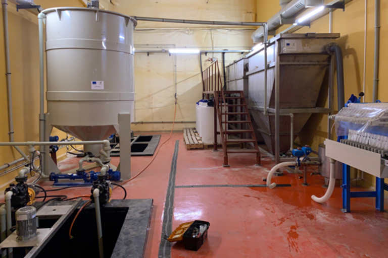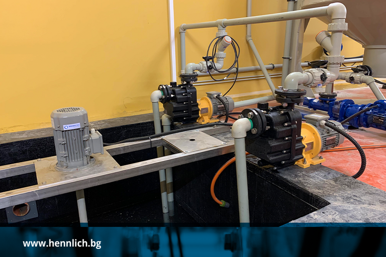 Следвайки технологичната схема и проектните данни, подбрахме оптималните помпи, бъркалки и окомплектовка. Дозиращите комплекти с мембранни помпи за химикали за корекция на pH са напълно окомплектовани и готови за употреба, като позволяват управление чрез външен аналогов сигнал от процесната автоматика. Центробежните неметални самозасмукващи помпи ще подават замърсените води към неутрализационните вани. В тях пропелерните бъркалки ще осигуряват равномерно разтваряне на химикалите и постигане на отлични параметри на отпадната вода. Ексцентър-шнековата помпа ще захранва филтър-пресата, за да се получава възможно най-суха утайка, което да намали разходите по нейното изхвърляне. Двойномембранната пневматична помпа ще спомага аварийно източване на ваните и резервоарите. Проточният магнито-индуктивен дебитомер ще измерва цялото количество отпадни води. Всички изделия са специално конфигурирани спрямо агресивната работна среда.