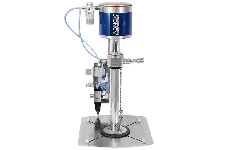 Pompele de butoi de la furnizorul nostru ABNOX sunt utilizate pentru transferul lubrifiantilor cu vascozitate medie si ridicata. Acestea functioneaza cu o placa de urmarire (un fel de disc presor) care apasa constant pe suprafata unsorii din recipient. Aceasta placa coboara odata cu scaderea nivelului de material, astfel incat pompa poate aspira mereu lubrifiantul fara sa ramana goluri de aer. In plus, pompa are un sistem de ridicare pneumatic care ajuta la aspirarea uniforma a unsorii si la golirea completa a butoiului. Cand materialul din recipient este pe sfarsite, pompa emite un semnal de golire si se opreste automat, pentru a evita tragerea aerului in sistem si risipa de unsoare.