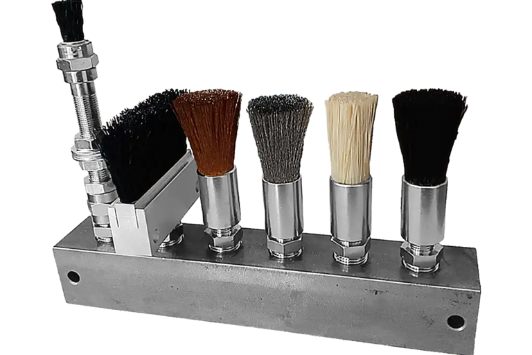 Perii rotunzi sunt disponibili cu fire din Perlon PA, bronz, par de cal, otel inoxidabil, fibra de sticla sau in variante pentru industria alimentara, rezistand la temperaturi de pana la 400 °C si fiind fabricati in dimensiuni intre 6,5 si 30 mm. Pentru lanturi sau suprafete late exista perii plati, in latimi de 57, 114 si 171 mm, iar periile cilindrice asigura o ungere eficienta a benzilor, lanturilor si cablurilor metalice, fiind realizate din Perlon sau otel inoxidabil. Suporturile sunt disponibile in mai multe lungimi si permit ajustarea rapida in functie de gradul de uzura al periei.