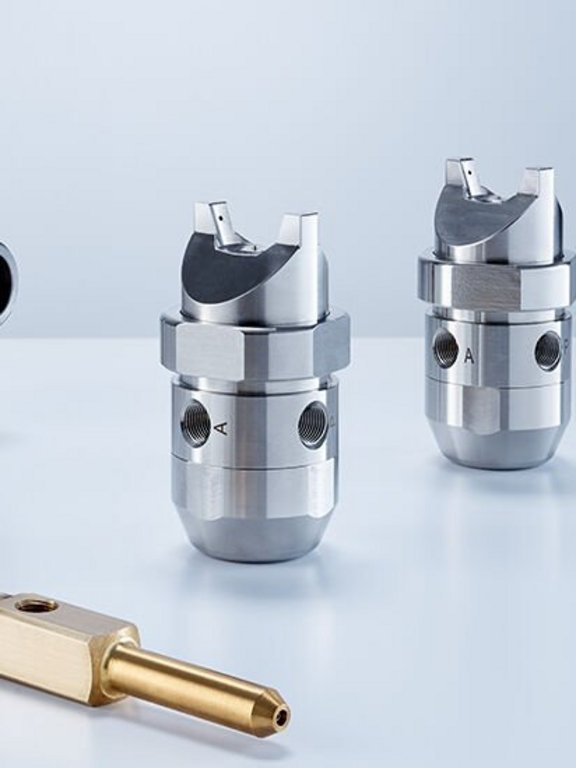 Duzele pneumatice de atomizare cu jet plat produc un model de pulverizare plat cu picaturi extrem de fine si un unghi de pulverizare de pana la 80°. Aceste duze sunt potrivite in special pentru aplicatii care necesita picaturi fine si un impact liniar.