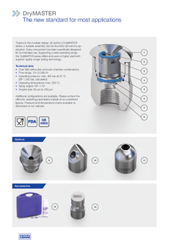 Alegerea seriei DryMASTER inseamna alegerea unui produs de calitate superioara, igienic. Aceasta serie de la Lechler este prima serie de duze de uscare prin pulverizare care ofera solutii complete conforme cu cerintele EU1935/2004, GB4806 si FDA.