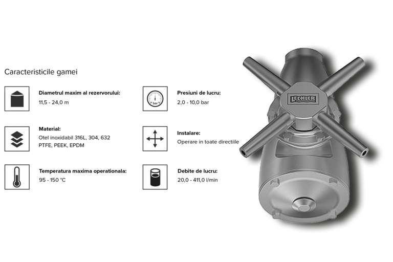 Noul program de curatare a rezervoarelor de la Lechler va ofera concepte inovative de functionare, design modern al duzelor, si o varietate larga de dimensiuni si materiale. Acest lucru este unic pe piata si veti gasi produse potrivite pentru majoritatea aplicatiilor.