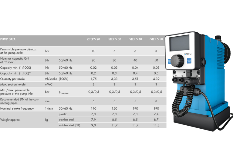 Pompele de dozare cu motor pas cu pas sunt echipate cu motoare pas cu pas, care permit o dozare extrem de precisa, controlabila si repetabila, caracteristici esentiale in procesele care necesita o atentie deosebita la cantitatea de substanta administrata. Interval de performanta pana la 15 l/h, contrapresiune de pana la max. 10 bar.