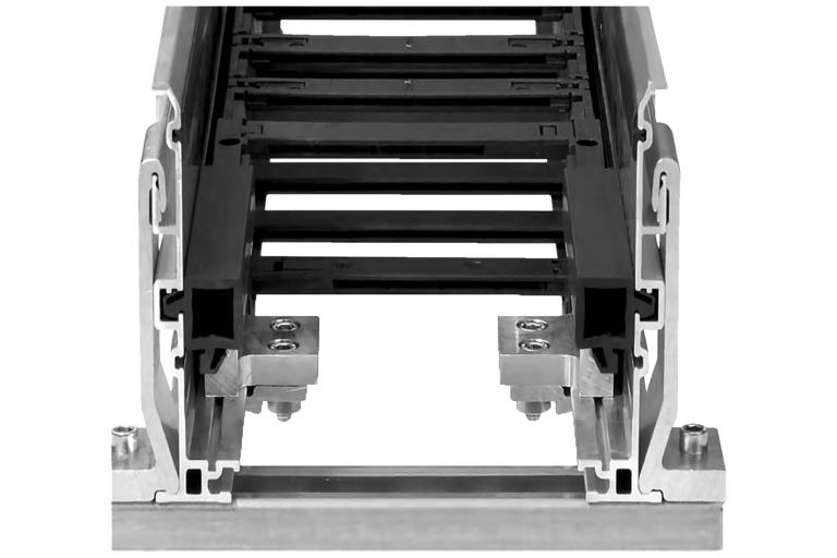 Versiunea de baza este destinata aplicatiilor din ingineria mecanica generala, iar varianta robusta, Heavy Duty, este ideala pentru constructia de instalatii. Partile laterale sunt realizate din aluminiu, iar sistemul modular este disponibil in doua versiuni – Basic si Heavy Duty – pentru a raspunde diverselor cerinte de utilizare. Instalarea este rapida, usoara si versatila, fiind posibila fixarea la substructura indiferent de lungimea profilului sau de pozitia imbinarilor. Profilul din aluminiu rezistent la coroziune si la apa de mare este prevazut cu benzi glisante care protejeaza impotriva abraziunii la viteze mari si cu profil de cauciuc inserabil pentru reducerea zgomotului. Elementele de conectare din plastic cu mecanism de blocare rapida, sinele de alunecare din PE si suporturile de montare asigura fixare sigura chiar si in conditii de exploatare dificile. Clemele inferioare pot fi montate la interior sau exterior, direct pe substrat sau pe profil C. Conductivitatea este conforma standardului DIN EN 61537.