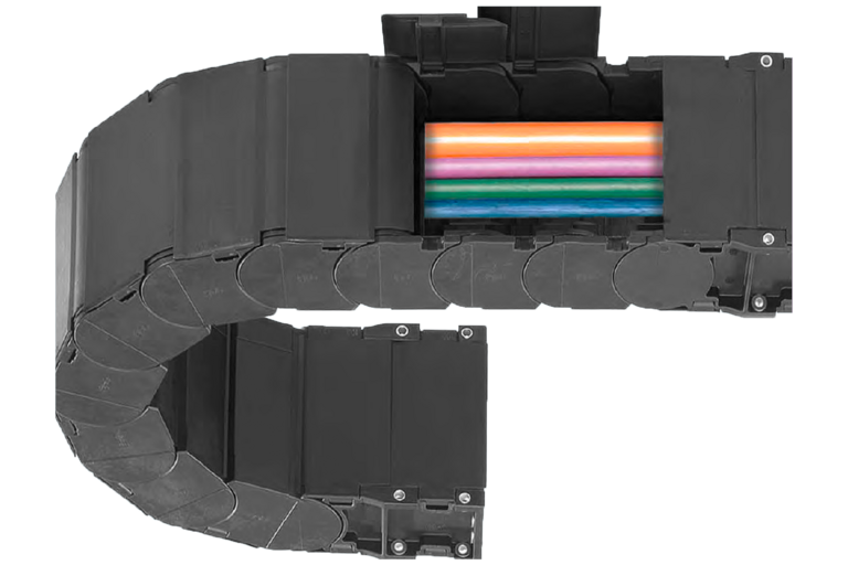 Lanturile portcablu tip tub inchis sunt utilizate cu succes in aplicatii industriale unde cablurile trebuie protejate de praf, span sau alte materiale abrazive. Sunt ideale pentru utilaje CNC, echipamente de prelucrare a metalelor, masini-unelte sau sisteme automatizate din industria grea. Datorita constructiei etanse, aceste lanturi asigura o protectie superioara si o functionare sigura in medii dificile. Reprezinta o alegere fiabila pentru cresterea duratei de viata a cablurilor si reducerea costurilor de intretinere.