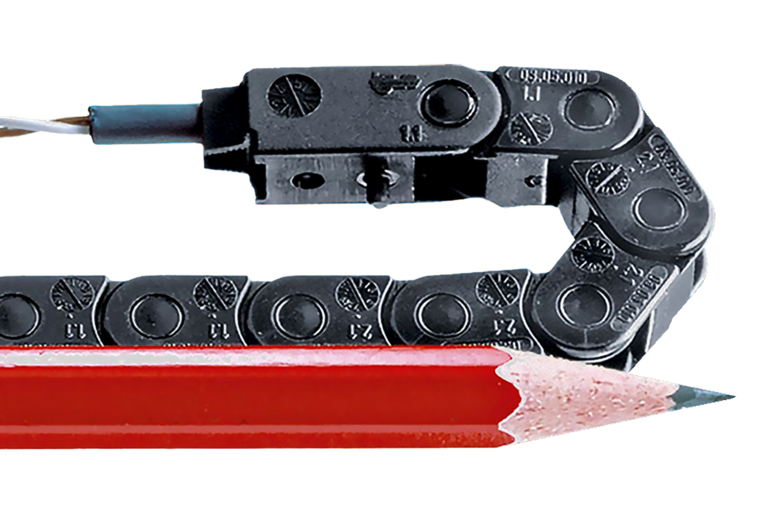 Cand spatiul de montaj este restrans, alegerea cablurilor si a lanturilor portcablu devine o provocare. In astfel de cazuri, sunt necesare solutii compacte, care sa functioneze fiabil chiar si in cele mai inguste locuri. Lanturile noastre miniaturale au fost special dezvoltate pentru a raspunde acestor cerinte, fiind ideale pentru aplicatii in spatii reduse. Noua generatie E2.1 micro se remarca printr-un design extrem de compact si usor, oferind totodata stabilitate si un sistem de deschidere facil.
