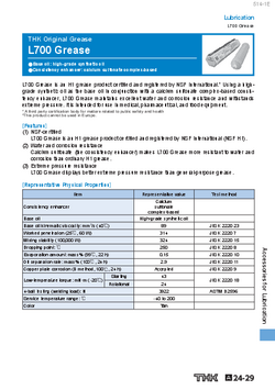 Asistent Comercial produse THKTHK pune la dispozitie o gama variata de tipuri de vaselina originala THK necesara pentru lubrifierea sistemelor de miscare liniara (LM). Aceste produse sunt disponibile pentru a raspunde unei varietati de conditii si medii de operare, asigurand performante optime si longevitate componentelor.